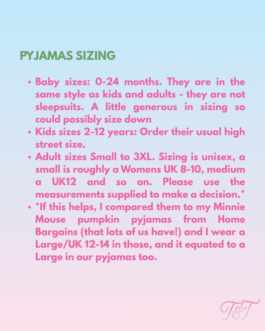PRE-ORDER ONLY: Wicked Pyjamas: Kids and Adult Sizes