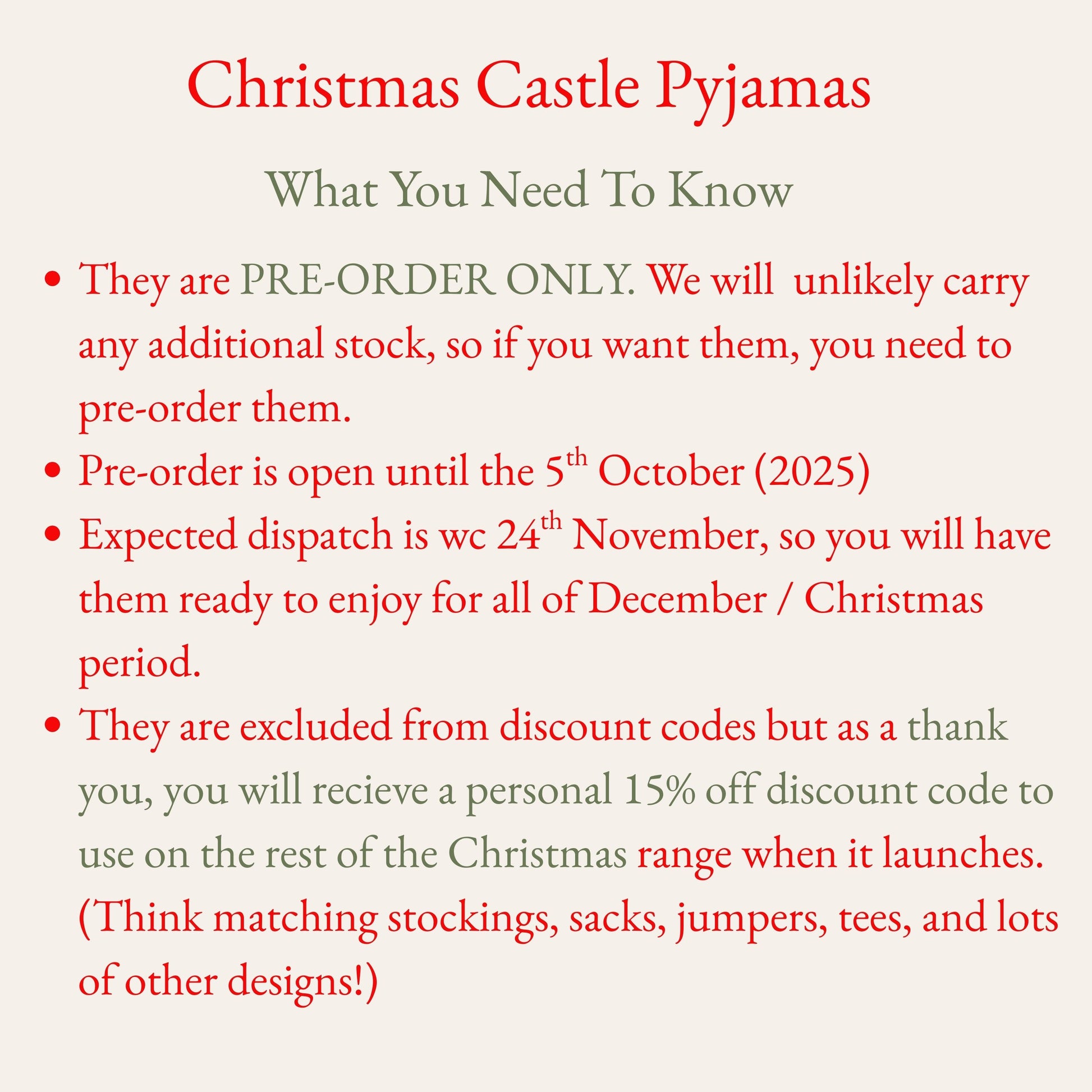PRE-ORDER ONLY: Magical Christmas Castle Pyjamas: Kids and Adult Sizes