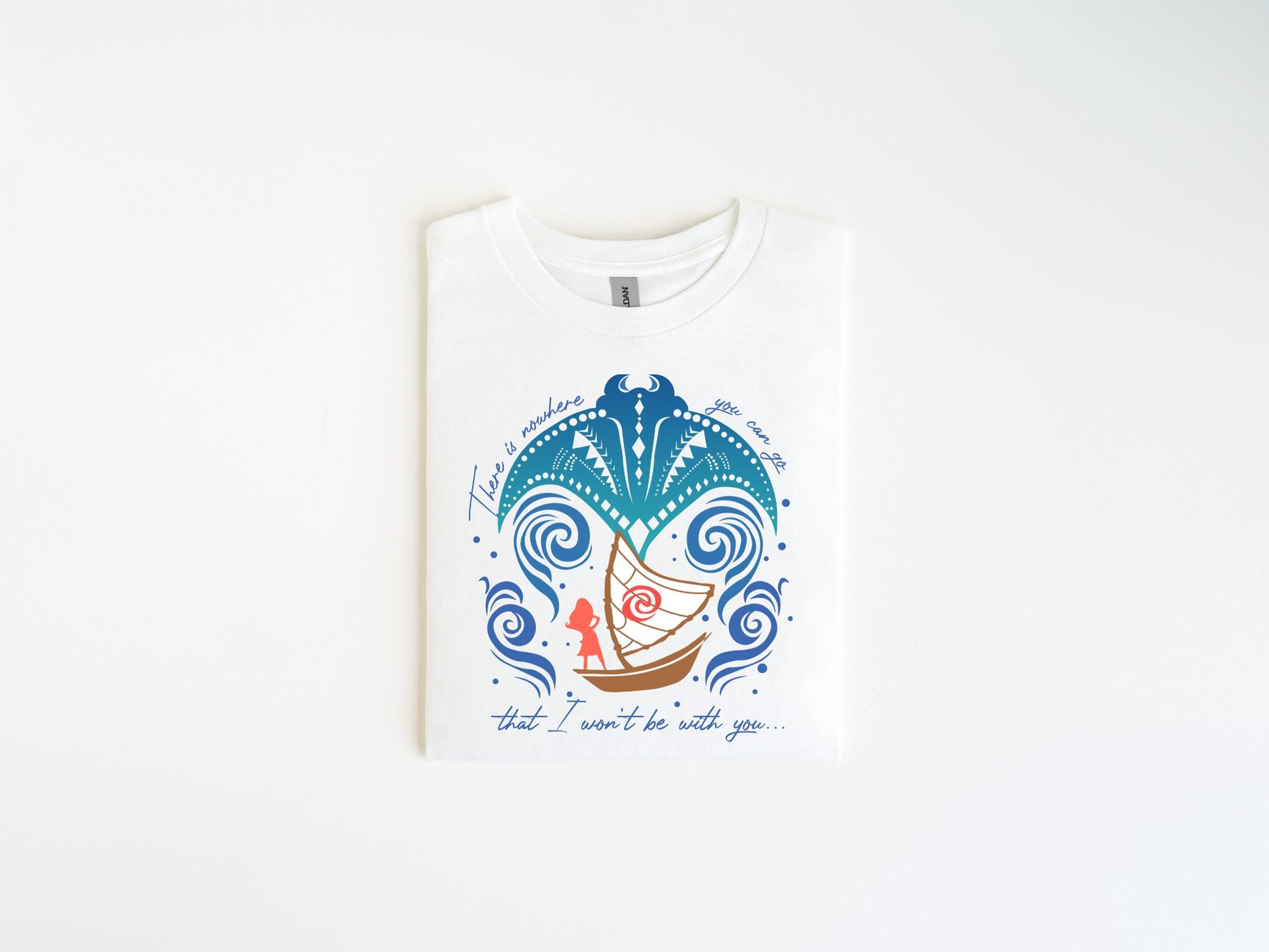 A beautiful gradient blue effect stingray Polynesian design featuring the quote 'There is nowhere you can go that I won't be with you'. It looks absolutely stunning on black because the gradient blue effect really stands out.